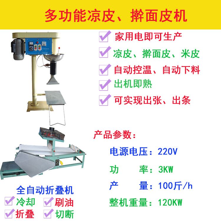 動化程度高,操作簡單。搟面皮筋道,用水稍微浸泡后,直接加入部分調料即為面皮,口感清爽滑溜,也可下湯、炒、燒烤均可。經營方式可城鄉集市、食品批發市場、商店小吃