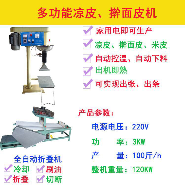 全自動涼皮機(jī)制作的涼皮厚薄可調(diào),能制作涼皮、米皮、搟面皮等產(chǎn)品。只要將面水倒入料斗內(nèi),出機(jī)即為熟制品。可根據(jù)各地流行口味自由選擇涼皮的厚薄。