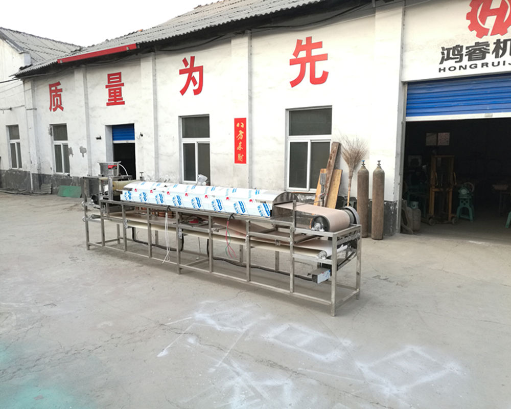 國銘新型數控圓形面皮機具有以下特點:1、全程自動化該設備具有自動上漿、機器成型、蒸汽蒸熟、自動刷油、自動接皮等功能,生產效率是人工的40倍。2、操作傻瓜化該設備非常容易操作,通過按鍵,輸入生產指令,即可實現自動化生產。3、出品率高使用該設備生產面皮,能達到1:2.4~2.8的出品率,即1斤面粉可生產2.4~2.8斤面皮。4、出品質量好該機生產的面皮,形狀和手工面皮一樣,而且薄厚均勻,筋度、口感和品相均優于手工面皮,在市場上該更有競爭力。5、一機多用該機可生產面皮、米皮,面皮、搟面皮等多種特色食品,還可以生產不同形狀的面皮類食品。此外,該機機還配備傳送帶糾偏系統,使傳送帶不跑偏。該機使用鍋爐或液化氣加熱,即使停電也不耽誤生產。每一臺機器出廠前,都經過運行測試,確保性能可靠。在正常使用條件下,壽命可達10年以上。如此先進的機器,能給投資者帶來多大的利潤,讓我們以精que的數字,向您呈現用國銘新型數控圓形面皮機生產面皮的經濟效益。