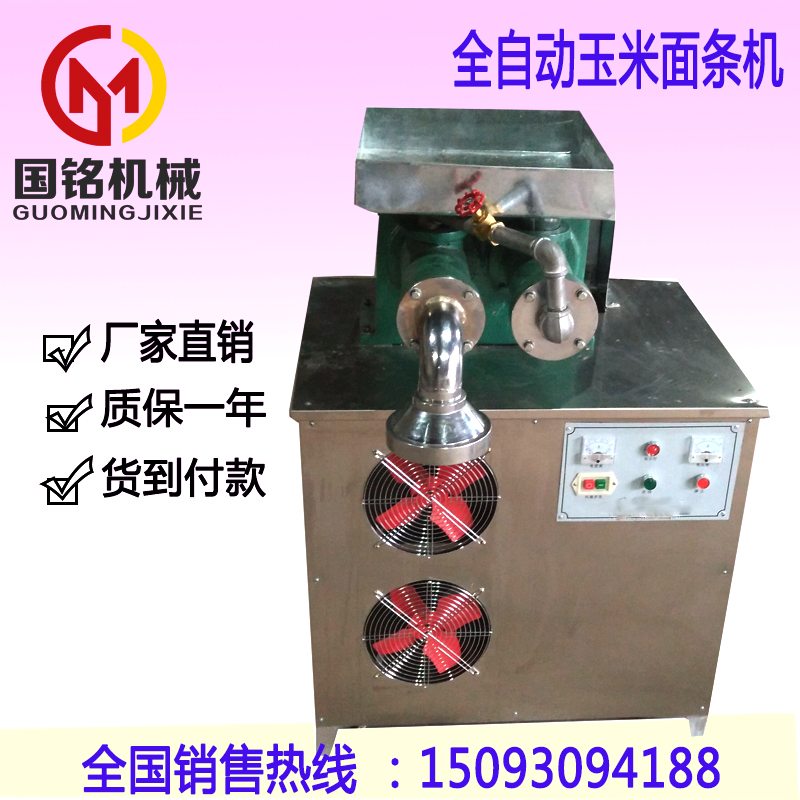 粗糧細吃,吃的是健康,吃的是時尚。食品權威人事一致認為,雜糧米粉、雜糧面條、雜糧粉絲產業將是21世紀最具有發展前途的朝陽產業,是最值得投資的項目。老百姓對綠色雜糧食品需求以每年30%的速度遞增,生產利潤豐厚。 MJ-150型玉米面條機其特點如下: 1、玉米面條機不改變玉米的粘結力,不分季節,不分干、濕,任何天氣均